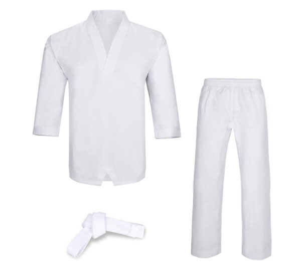 Taekwondo Uniforms Promotional Quality 100% Cotton With Draw String waist with belts. 6 oz
